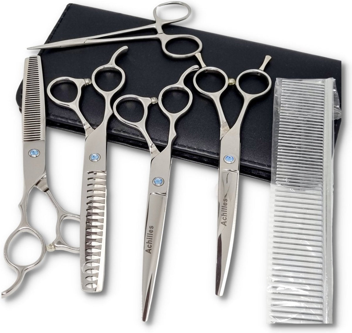 Achilles® Linkshandig Pro 7-Delig Scharenset Hond - 7 Inch Honden Schaar - Effileerschaar Hond